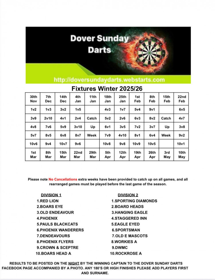 DOVER SUNDAY DARTS SPONSORED BY